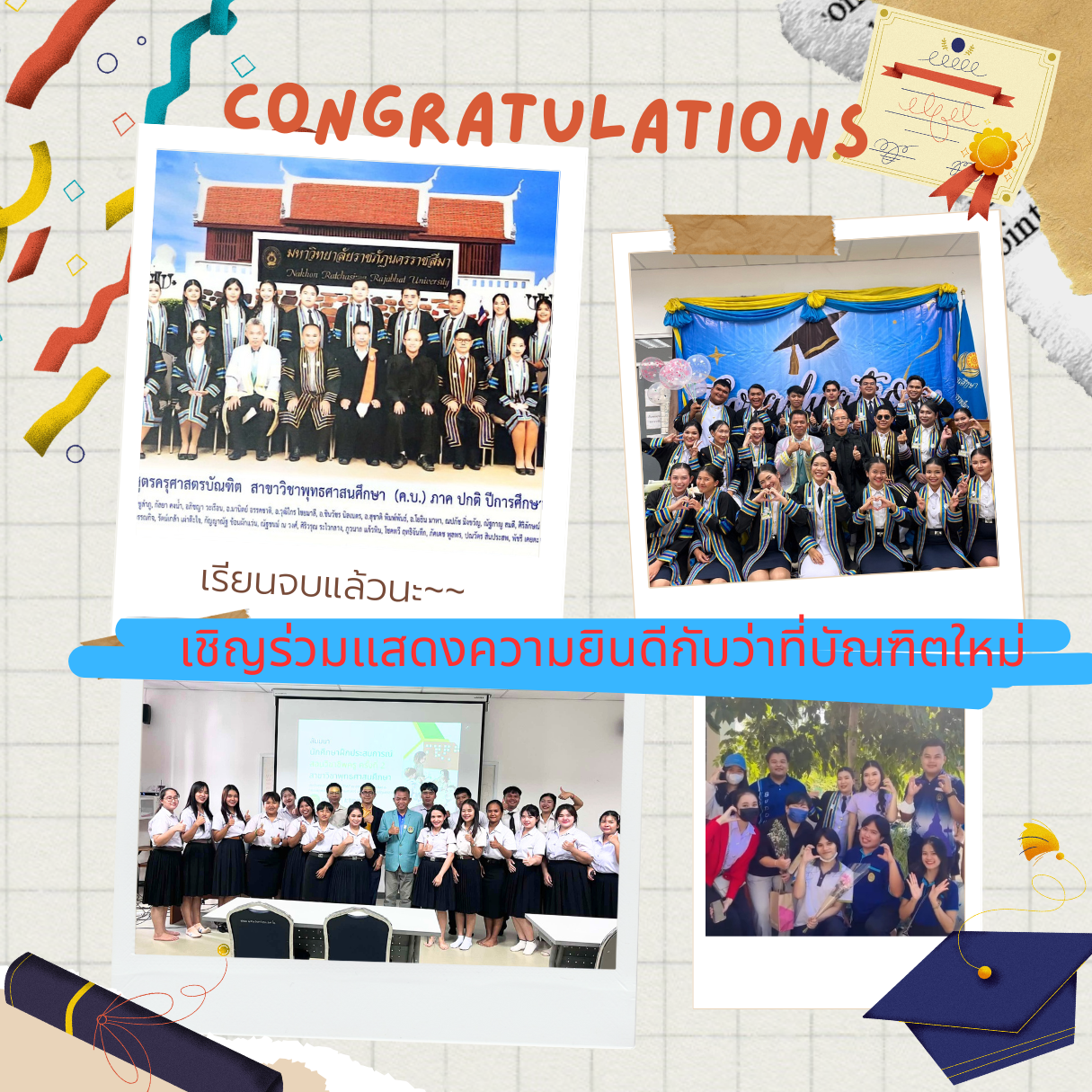 หลักสูตรครุศาสตรบัณฑิต สาขาวิชาพุทธศาสนศึกษา เชิญร่วมแสดงความยินดีกับว่าที่บัณฑิตใหม่และถ่ายภาพเป็นที่ระลึกกับว่าที่บัณฑิต รุ่นที่ 10 ของสาขาวิชาพุทธศาสนศึกษา ในวันศุกร์ ที่ 4 ตุลาคม 2567 ตั้งแต่เวลา 15.00 น. เป็นต้นไป ณ อาคาร 35 หอประชุมราชภัฏรังสฤษฏ์ มหาวิทยาลัยราชภัฏนครราชสีมา