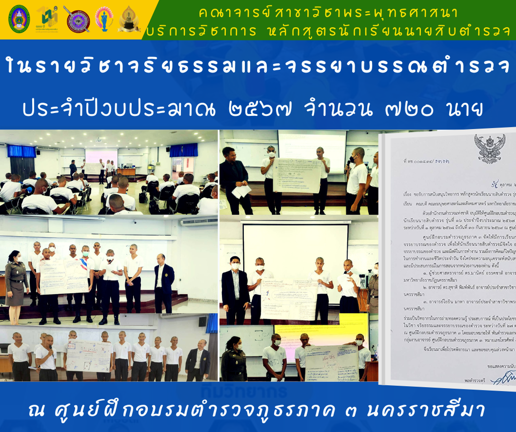 ศูนย์ฝึกอบรมตำรวจภูธรภาค ๓ ได้ขอความอนุเคราะห์บุคลากรจาก คณะมนุษยศาสตร์และสังคมศาสตร์ มหาวิทยาลัยราชภัฏนครราชสีมา จำนวน ๓ ท่าน ร่วมเป็นวิทยากรในการบรรยายและจัดกิจกรรมการเรียนรู้ ได้แก่