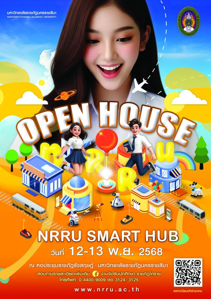 มหาวิทยาลัยราชภัฏนครราชสีมา ขอเชิญนักเรียน นักศึกษา ผู้ปกครอง และผู้ที่สนใจ เข้าร่วมงาน NRRU Open House 2025 ภายใต้แนวคิด “NRRU Smart Hub” ระหว่างวันที่ 12 – 13 พฤศจิกายน 2568 เวลา 08.30 – 16.00 น. ณ หอประชุมราชภัฏรังสฤษฏ์ มหาวิทยาลัยราชภัฏนครราชสีมา