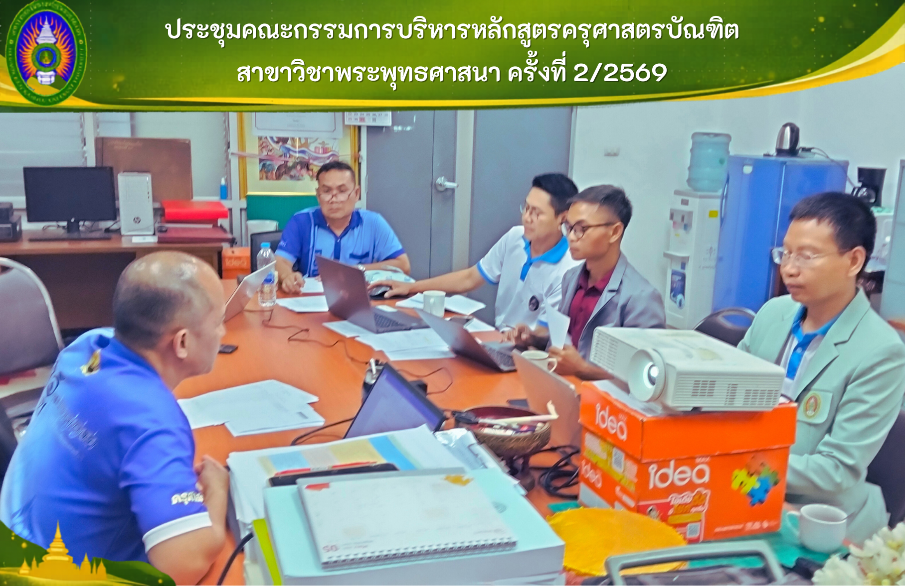 คณะกรรมการบริหารหลักสูตรครุศาสตรบัณฑิต สาขาวิชาพระพุทธศาสนา จัดการประชุมครั้งที่ 2/2569 เมื่อวันที่ 24 เมษายน 2569 ณ ห้องสาขาวิชาพระพุทธศาสนา ชั้น 6 อาคาร 36 คณะมนุษยศาสตร์และสังคมศาสตร์ โดยมีประเด็นสำคัญในการขับเคลื่อนการพัฒนาหลักสูตรและยกระดับคุณภาพการศึกษาอย่างต่อเนื่อง