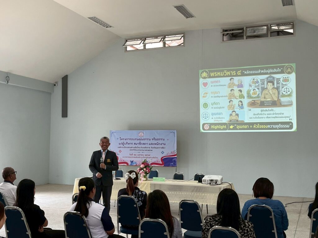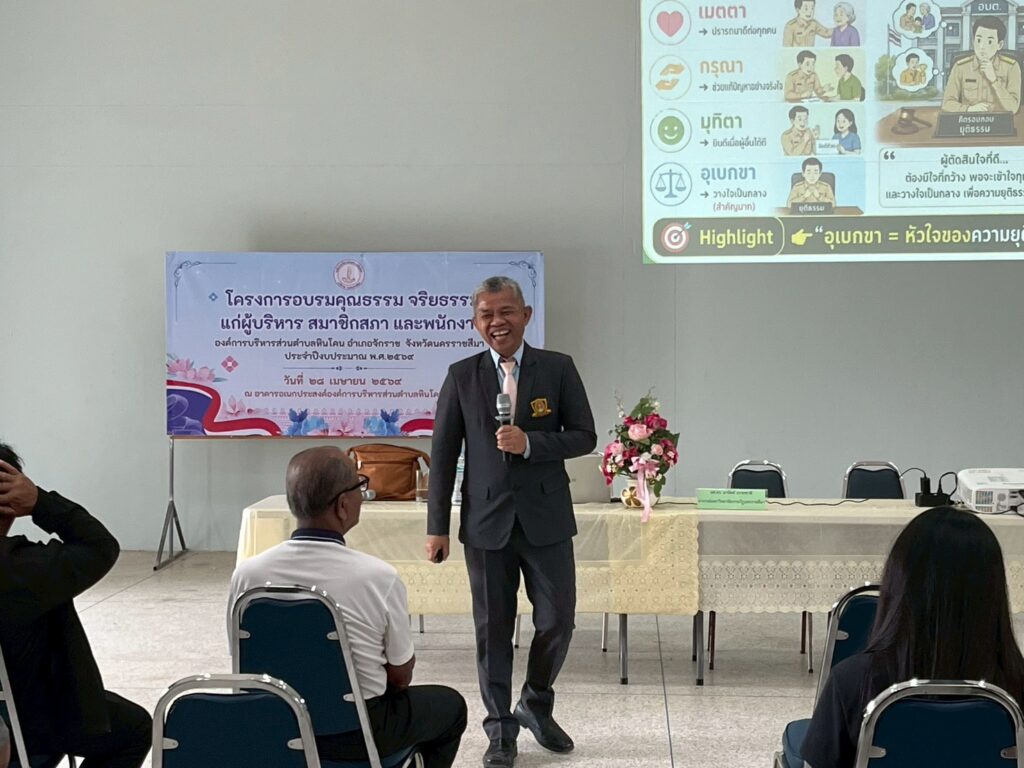 ในการนี้ ได้รับเกียรติจาก ผู้ช่วยศาสตราจารย์ ดร.มานิตย์ อรรคชาติ อาจารย์ประจำสาขาวิชาพระพุทธศาสนา มหาวิทยาลัยราชภัฏนครราชสีมา เป็นวิทยากรบรรยายให้ความรู้แก่ผู้เข้าร่วมโครงการ ซึ่งประกอบด้วยผู้บริหาร สมาชิกสภาองค์การบริหารส่วนตำบล และพนักงานในสังกัด