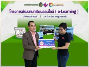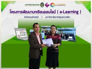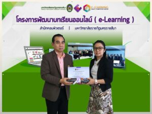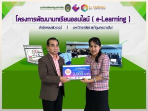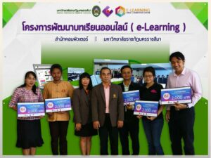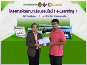 ตามที่สำนักคอมพิวเตอร์ มหาวิทยาลัยราชภัฏนครราชสีมา ได้จัดโครงการพัฒนาบทเรียนออนไลน์ e-Learning ประจำปีงบประมาณ 2559 และได้ประกาศผลการประกวดสื่อบทเรียนออนไลน์ ประจำปีงบประมาณ 2559 ในวันอังคารที่ 26 กรกฎาคม พ.ศ 2559 ห้อง 27.02.09 เวลา 10.00 น. ณ สำนักคอมพิวเตอร์ มหาวิทยาลัยราชภัฏนครราชสีมา โดยมีคณาจารย์จากมหาวิทยาลัยราชภัฏนครราชสีมา จำนวน 19 คน เข้าร่วมโครงการ โดยโครงการดังกล่าวได้มอบรางวัลพิเศษจำนวน 5 รางวัลใหักับคณาจารย์ที่มีผลงานการพัฒนาบทเรียนออนไลน์ e-Learning อย่างก้าวหน้า ในส่วนโปรแกรมวิชาปรัชญา ศาสนาและเทววิทยา มีคณาจารย์เข้าร่วม 3 คน คือ
