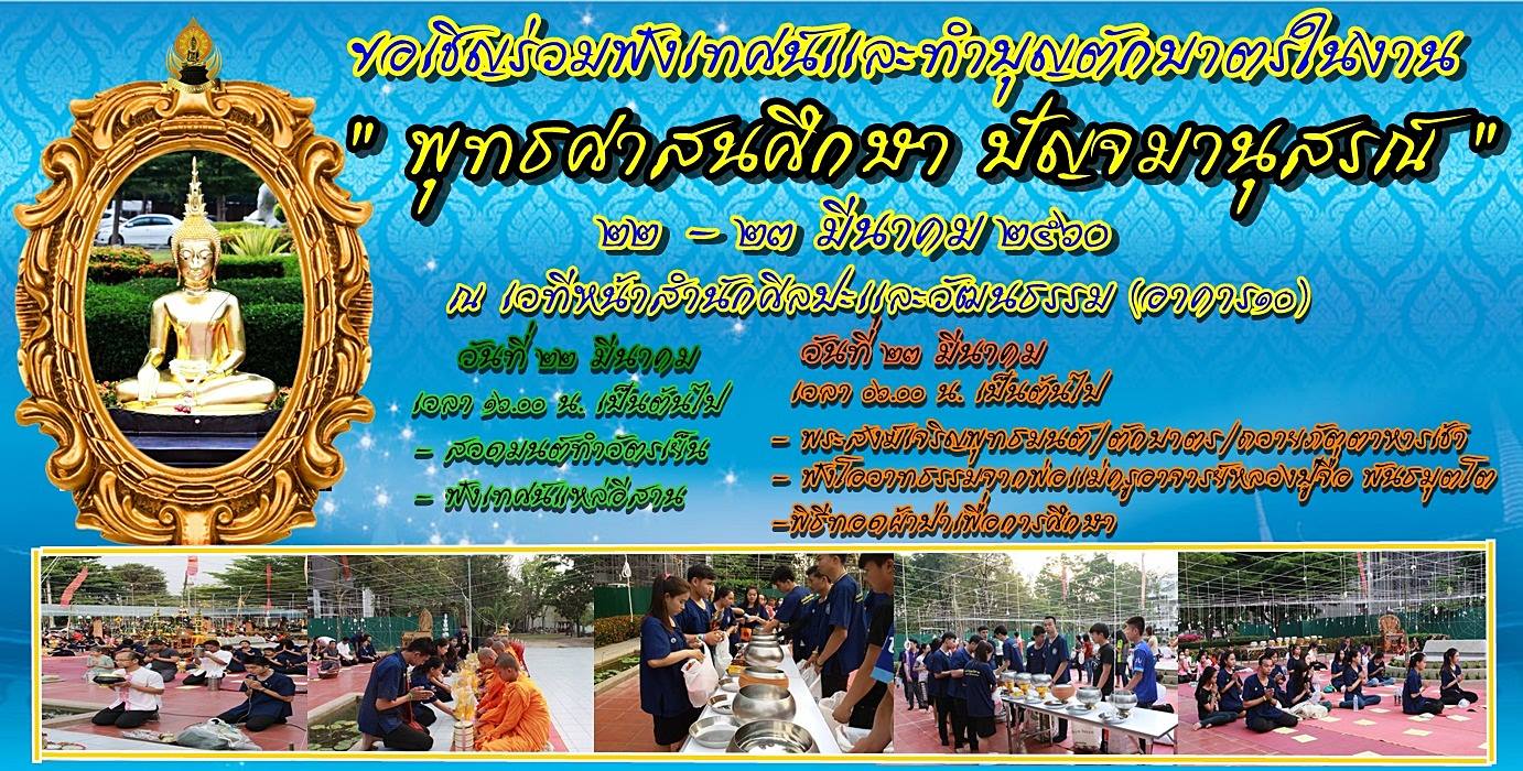 ขอเชิญร่วมเป็นเจ้าภาพงาน “พุทธศาสนศึกษา ปัญจมานุสรณ์” และทอดผ้าป่าสามัคคีเพื่อการศึกษา เนื่องในโอกาสครบรอบ 5 ปี แห่งการก่อตั้งสาขาวิชาพุทธศาสนศึกษา