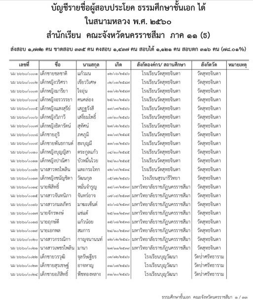 ประกาศรายชื่อผู้สอบผ่านธรรมศึกษาชั้นเอก ประจำปี 2560 สนามสอบมหาวิทยาลัยราชภัฏนครราชสีมา