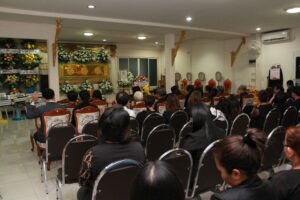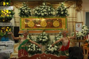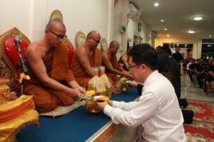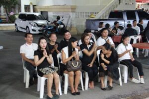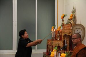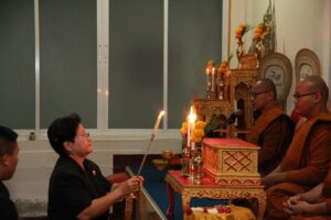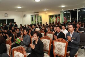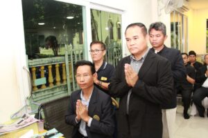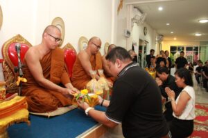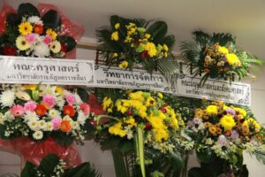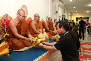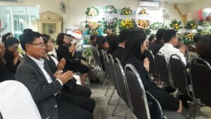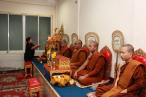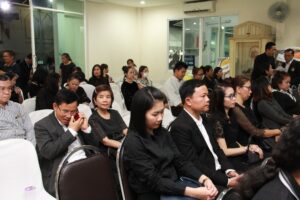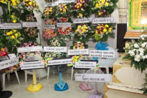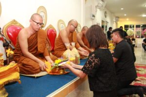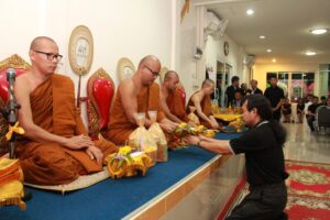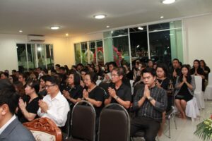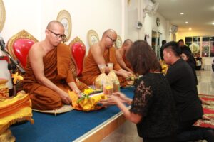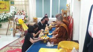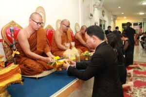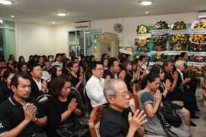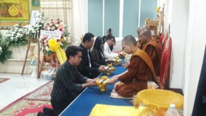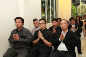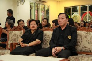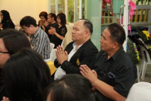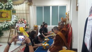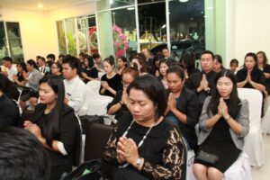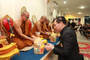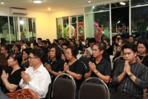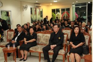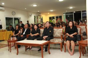 ตามที่ ผศ.เมินรัตน์ นวะบุศย์ อดีตคณบดีคณะมนุษยศาสตร์และสังคมศาสตร์ อดีตอาจารย์หลักสูตรครุศาสตรบัณฑิต สาขาวิชาพุทธศาสนศึกษา ได้ถึงแก่กรรมแล้ว เมื่อเช้าวันที่ ๓ มกราคม ๒๕๖๑ ที่ผ่านมาแล้วนั้น โดยเมื่อเย็นของวันที่ ๓ มกราคม ๒๕๖๑ ได้มีพิธีรดน้ำศพและสวดพระอภิธรรมศพ ผศ.เมินรัตน์ นวะบุศย์ ณ ศาลา ๕ วัดสุทธจินดา โดยมีการสวดพระอภิธรรมทุกคืน ในส่วนของเจ้าภาพสวดพระอภิธรรมในวันที่ ๕ มกราคม ๒๕๖๑ ซึ่งเป็นคืนที่สามคืนสุดท้ายของการบำเพ็ญกุศลมีเจ้าภาพคณะต่าง ๆ ประกอบไปด้วย