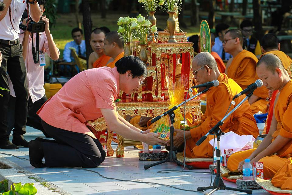 โดยมีการทำบุญตักบาตร ข้าวสาร อาหารแห้ง พระสงฆ์จำนวน 92 รูป จากมหาวิทยาลัยมหาจุฬาลงกรณราชวิทยาลัย วิทยาเขตนครราชสีมา โดยมีพระเดชพระคุณพระราชวิมลโมลี เจ้าคณะจังหวัดนครราชสีมา เดินทางมาเป็นประธานพิธีฝ่ายสงฆ์ ในส่วนทางมหาวิทยาลัยนั้นได้รับเกียรติจากท่าน รศ.ดร.วิเชียร ฝอยพิกุล รักษาราชการแทนอธิการบดีมหาวิทยาลัยราชภัฏนครราชสีมา มาเป็นประธานในพิธีฝ่ายฆราวาส