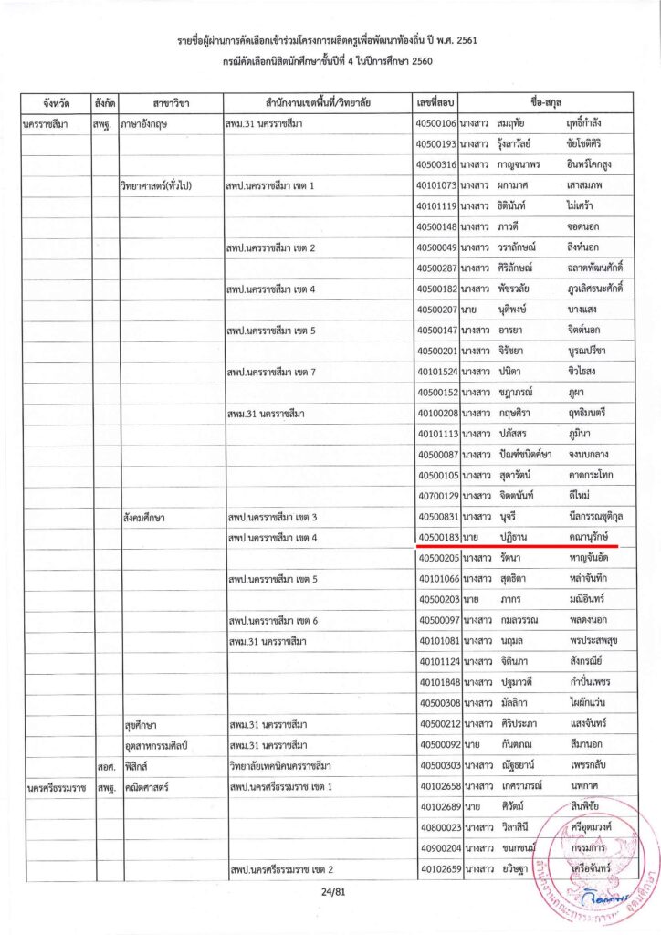 1. นางสาวปณตพร ทองสงฆ์ สพป.นม. เขต 4