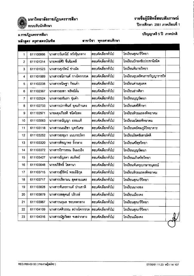 ประกาศรายชื่อผู้มีสิทธิ์สอบสัมภาษณ์ รอบรับตรงอิสระ ระดับปริญญาตรี สาขาวิชาพุทธศาสนศึกษา ประจำปีการศึกษา 2561 ในวันศุกร์ที่ 15 มิถุนายน 2561 เวลา 09.00 – 10.30 น. ณ หอประชุมอนุสรณ์ 70 ปี