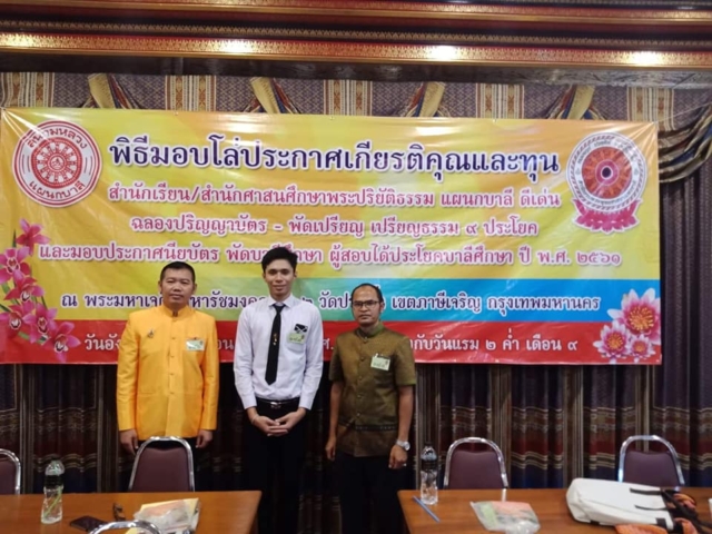 เมื่อวันอังคารที่ ๒๘ สิงหาคม ๒๕๖๑ ที่ผ่านมา ได้มีพิธีมอบโล่ประกาศเกียรติคุณและทุนสำนักเรียน/สำนักศาสนศึกษาพระปริยัติธรรม แผนกบาลี ดีเด่น ฉลองปริญญาบัตร – พัดเปรียญ เปรียญธรรม ๙ ประโยค และมอบประกาศนียบัตร พัดบาลีศึกษา ผู้สอบได้ประโยคบาลีศึกษา ๒๕๖๑