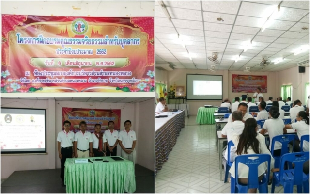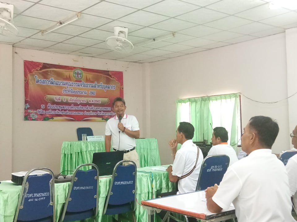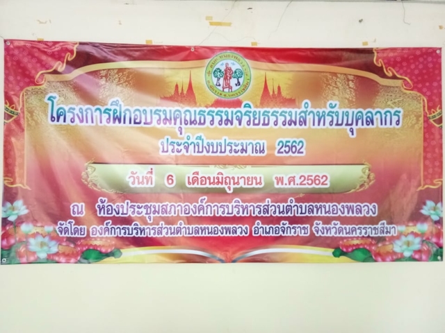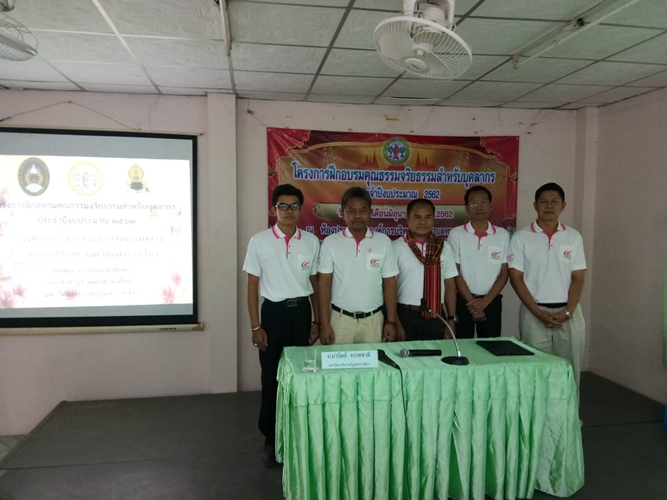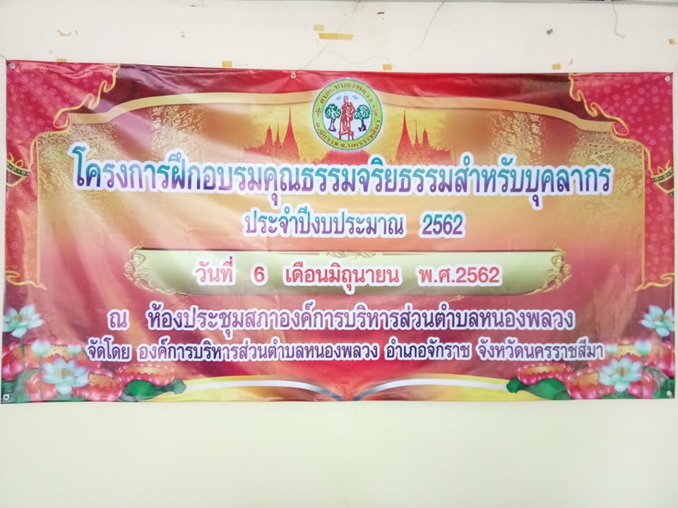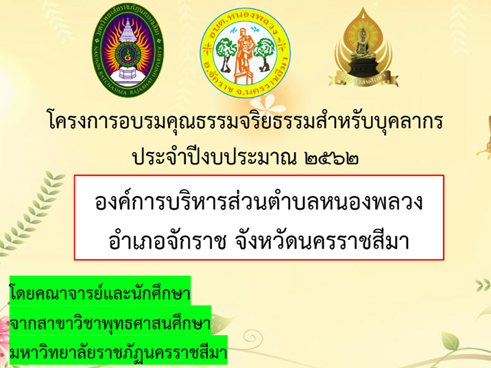 เมื่อวันที่ 6 มิถุนายน 2562 ที่ผ่านมา คณาจารย์หลักสูตรพุทธศาสนศึกษา บริการวิชาการให้ความรู้ในโครงการฝึกอบรมคุณธรรมจริยธรรมสำหรับบุคลากร ประจำปีงบประมาณ 2562 ณ องค์การบริหารส่วนตำบลหนองพลวง ตำบลหนองพลวง อำเภอจักราช จังหวัดนครราชสีมา โดยมีคณาจารย์จากหลักสูตรครุศาสตรบัณฑิต สาขาวิชาพุทธศาสนศึกษาเป็นวิทยากรประกอบไปด้วย อาจารย์วุฒิไกร ไชยมาลี อาจารย์โยธิน มาหา อาจารย์มานิตย์ อรรคชาติ อาจารย์ชินวัชร นิลเนตร และนายสิทธิชัย ทวีโคตร โดยโครงการดังกล่าวเป็นความร่วมมือขององค์การบริหารส่วนตำบลหนองพลวงร่วมกับมหาวิทยาลัยราชภัฏนครราชสีมา ได้จัดโครงการดังกล่าวเพื่อเป็นการฝึกอบรมคุณธรรมจริยธรรมสำหรับบุคลากร ประจำปีงบประมาณ 2562 โดยมีสมาชิก อบต. และพนักงานขององค์การบริหารส่วนตำบลหนองพลวงเข้าร่วมกิจกรรมโดยพร้อมเพรียงกัน