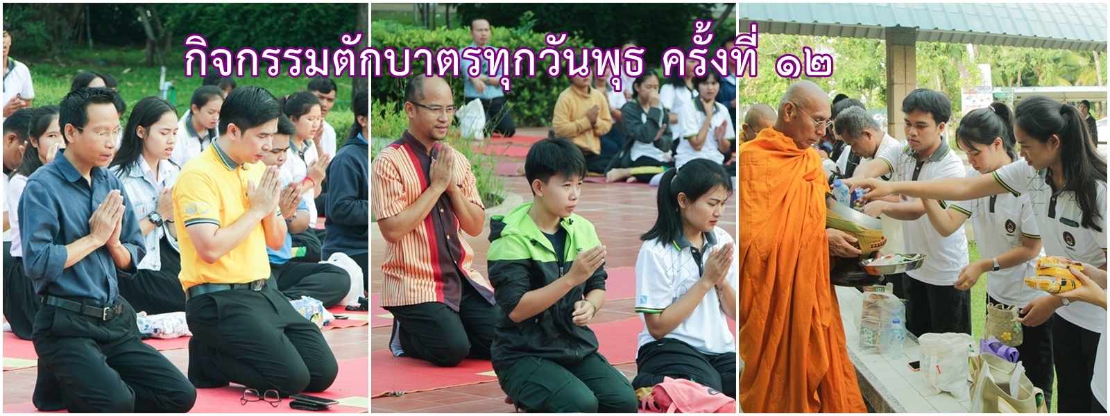 เมื่อเวลา ๐๖.๓๐ น. ของวันพุธที่ ๑๘ กันยายน ๒๕๖๒ (แรม ๕ ค่ำ เดือน ๑๐ ปีกุน) ณ ลานธรรมเฉลิมพระเกียรติ มหาวิทยาลัยราชภัฏนครราชสีมา ได้มีการจัดกิจกรรมตักบาตรวันพุธ (ครั้งที่ ๑๒) ภาคเรียนที่ ๑ ประจำปีการศึกษา ๒๕๖๒ โดยมีคณาจารย์ บุคลากรและนักศึกษาของมหาวิทยาลัยราชภัฏนครราชสีมา เข้าร่วมสวดมนต์ไหว้พระ สมาทานศีล ฟังธรรม เป็นกิจกรรมที่ส่งเสริมคุณธรรมจริยธรรม เพื่อพัฒนาคุณภาพชีวิตและสังคม ด้วยหลักธรรมคำสอนทางพระพุทธศาสนาให้แก่นักศึกษาและบุคลากรของมหาวิทยาลัยฯ (ตลอดระยะเวลาในการดำเนินกิจกรรมมาอย่างต่อเนื่องกว่า ๑๗ ปี) โดยมีนักศึกษาจากหลักสูตรครุศาสตรบัณฑิต สาขาวิชาพุทธศาสนศึกษาเป็นผู้ดำเนินการด้านศาสนพิธี นำไหว้พระ สวดมนต์ อาราธนาศีล เป็นต้นเสียงในการถวายสังฆทาน ก่อนจะที่ได้ร่วมตักบาตรข้าวสารอาหารแห้งแด่พระสงฆ์จากวัดโนนเมือง นำโดยพระครูศีลวราภรณ์ เจ้าอาวาสวัดโนนเมือง พร้อมด้วยคณะสงฆ์จำนวน ๕ รูป ซึ่งมีคณาจารย์ บุคลากร และนักศึกษาจากคณะต่าง ๆ เข้าร่วมกิจกรรมเป็นจำนวนมาก ซึ่งปัจจัยและข้าวสารอาหารแห้งที่ได้รับจากการบิณฑบาต จะนำไปช่วยเหลือผู้ประสบอุทกภัยในจังหวัดอุบลราชธานี ในวันเสาร์ที่ ๒๑ กันยายน ๒๕๖๒ ที่จะถึงนี้