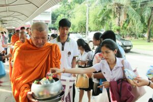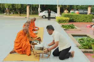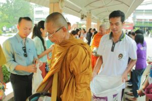 โดยส่วนหนึ่งของกิจกรรมก็ยังได้ช่วยอำนวยความสะดวกคือนักศึกษาสาขาวิชาพุทธศาสนศึกษา ได้ดำเนินการในการเป็นผู้นำด้านศาสนพิธี ไหว้พระ สมาทานศีล รับศีล เป็นต้นเสียงนำกล่าวถวายสังฆทาน ตลอดจนการรับบาตร ช่วยยกข้าวสารอาหารแห้ง การคัดแยกประเภทของข้าวสาร อาหารแห้งที่เอามาใส่บาตรเป็นจำนวนมาก จนแล้วเสร็จในที่สุด