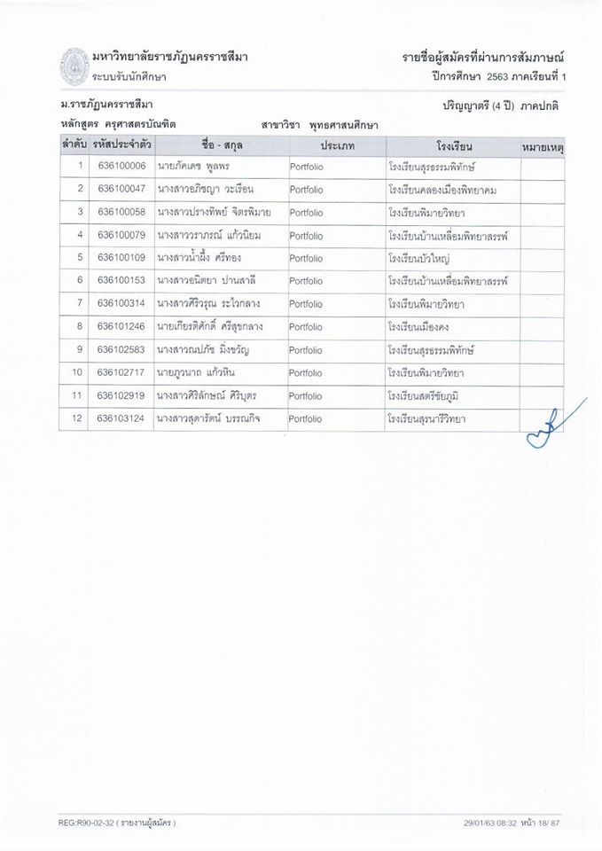 ประกาศรายชื่อผู้สอบผ่านการคัดเลือกในระดับปริญญาตรี ภาคปกติ รอบPortfolio ปีการศึกษา 2563 โดยในส่วนของหลักสูตรครุศาสตรบัณฑิต สาขาวิชาพุทธศาสนศึกษา หลักสูตร 4 ปีนั้นมีผู้ผ่านการคัดเลือกเข้าศึกษาต่อทั้งหมด 12 คน ทั้งนี้ ให้ผู้ผ่านการคัดเลือกยืนยันสิทธิ์ clearing house ผ่านเว็บไซต์ https://www.mytcas.com/ ในวันที่ 30-31 มกราคม 2563 โดยที่มหาวิทยาลัยจะประกาศรายชื่อผู้มีสิทธิ์เข้าศึกษาต่อในวันที่ 4 กุมภาพันธ์ 2563 และกำหนดรายงานตัวการเป็นนักศึกษาวันที่ 15 กุมภาพันธ์ 2563 ที่จะถึงนี้