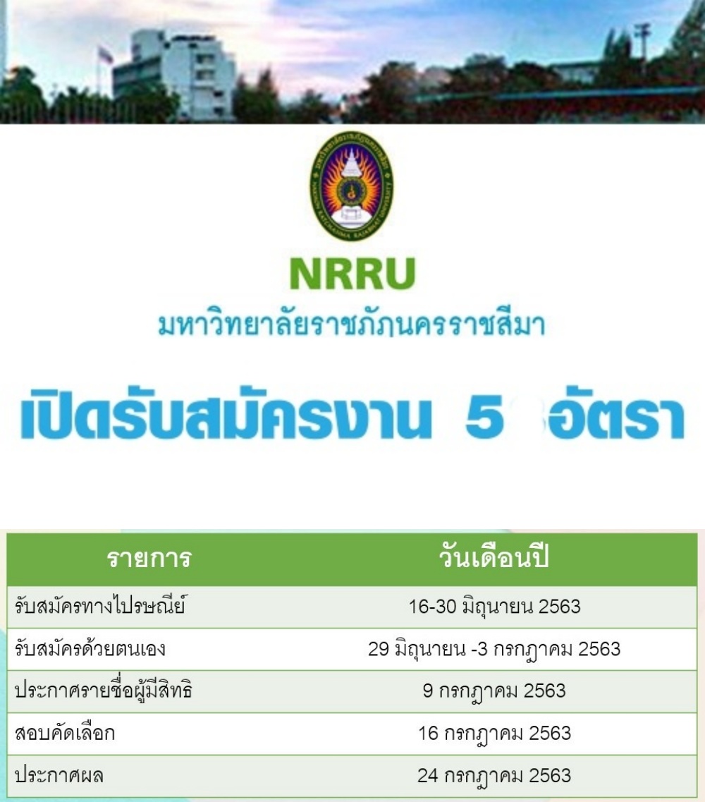 มหาวิทยาลัยราชภัฏนครราชสีมารับสมัครบุคคลเพื่อเลือกสรรเป็นพนักงานราชการ จำนวน 5 อัตรา
