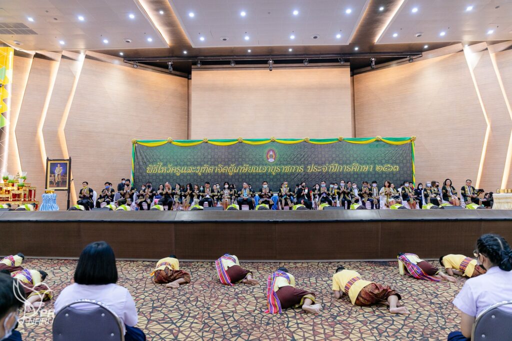 วันที่ 3 กันยายน 2563 กองพัฒนานักศึกษา ร่วมกับ องค์การบริหารนักศึกษาภาคปกติ มหาวิทยาลัยราชภัฏนครราชสีมา น้อมวันทาบูชาครู จัดพิธีไหว้ครูและพิธีมุทิตาจิตผู้เกษียณอายุราชการ ประจำปีการศึกษา 2563 ณ หอประชุมใหม่ โดยมี ผู้ช่วยศาสตราจารย์ ดร.อดิศร เนาวนนท์ อธิการบดี เป็นประธานในพิธี ซึ่งกิจกรรมได้จัดให้มีการแสดง โดย นักศึกษาสาขาวิชานาฏศิลป์ไทย ตัวแทนนักศึกษานำพานขึ้นไหว้ครู พิธีเจิมหนังสือ การมอบโล่และเกียรติบัตรแก่คณะกรรมการองค์การบริหารนักศึกษา นักศึกษาเรียนดี และนักศึกษาที่ได้รับรางวัลเยาวชนผู้ใช้ภาษาไทยดีเด่นฯ