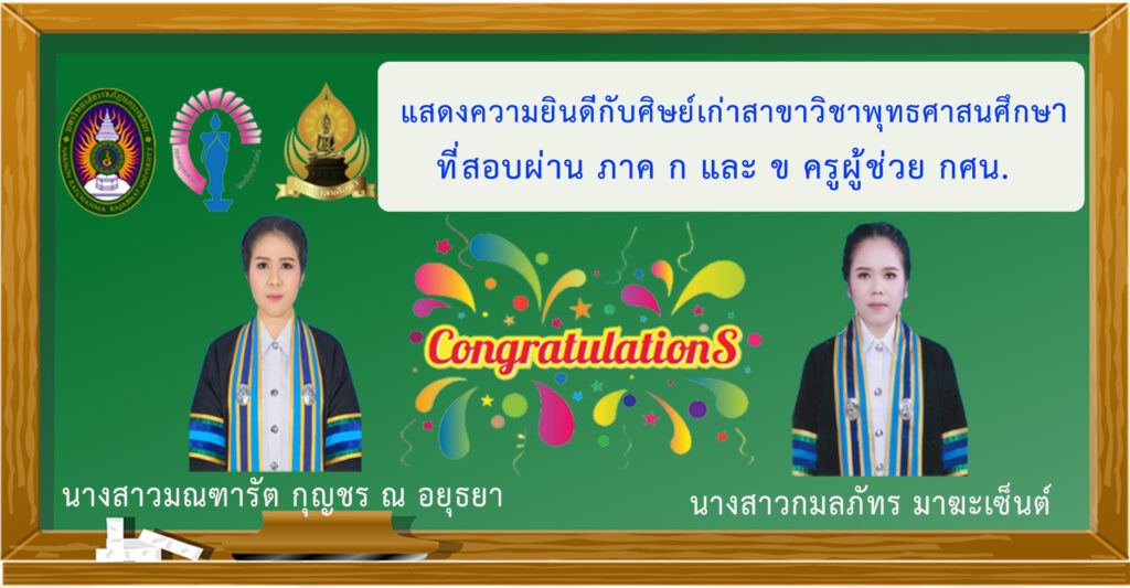 ในโอกาสนี้ทางหลักสูตรขอแสดงความชื่นชมยินดีกับศิษย์เก่าของหลักสูตรครุศาสตรบัณฑิต สาขาวิชาพุทธศาสนศึกษา ที่สามารถสอบผ่านภาค ก และ ภาค ข และมีสิทธิ์เข้ารับการประเมินภาค ค ต่อไป
