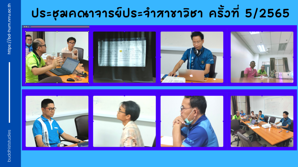 วันอังคาร ที่ 15 พฤศจิกายน 2565 ตั้งแต่เวลา 13.00 น. ที่ผ่านมา สาขาวิชาพุทธศาสนศึกษา คณะมนุษยศาสตร์และสังคมศาสตร์ มหาวิทยาลัยราชภัฏนครราชสีมา ได้จัดประชุมคณาจารย์ประจำสาขาวิชาพุทธศาสนศึกษา ครั้งที่ 5/2565 ซึ่งจัดการประชุม ณ อาคาร 36 ชั้น 7 ห้อง 4 คณะมนุษยศาสตร์และสังคมศาสตร์ โดยมีวาระการประชุมแจ้งเพื่อทราบและพิจารณาเรื่องต่าง ๆ ดังต่อไปนี้คือ