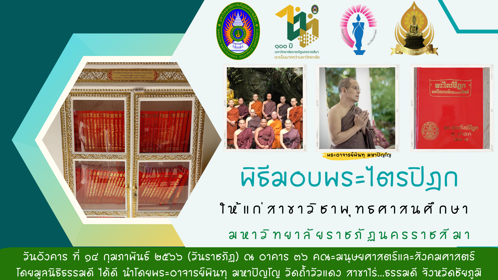 พิธีมอบพระไตรปิฎกให้สาขาวิชาพุทธศาสนศึกษา มหาวิทยาลัยราชภัฏนครราชสีมา