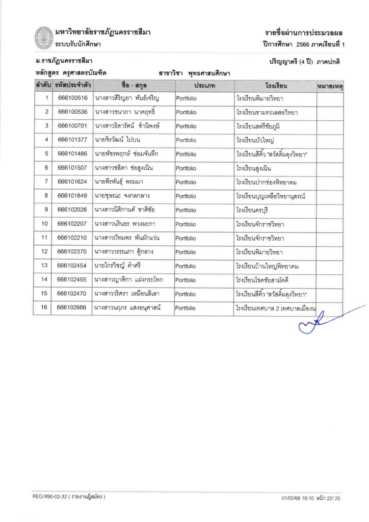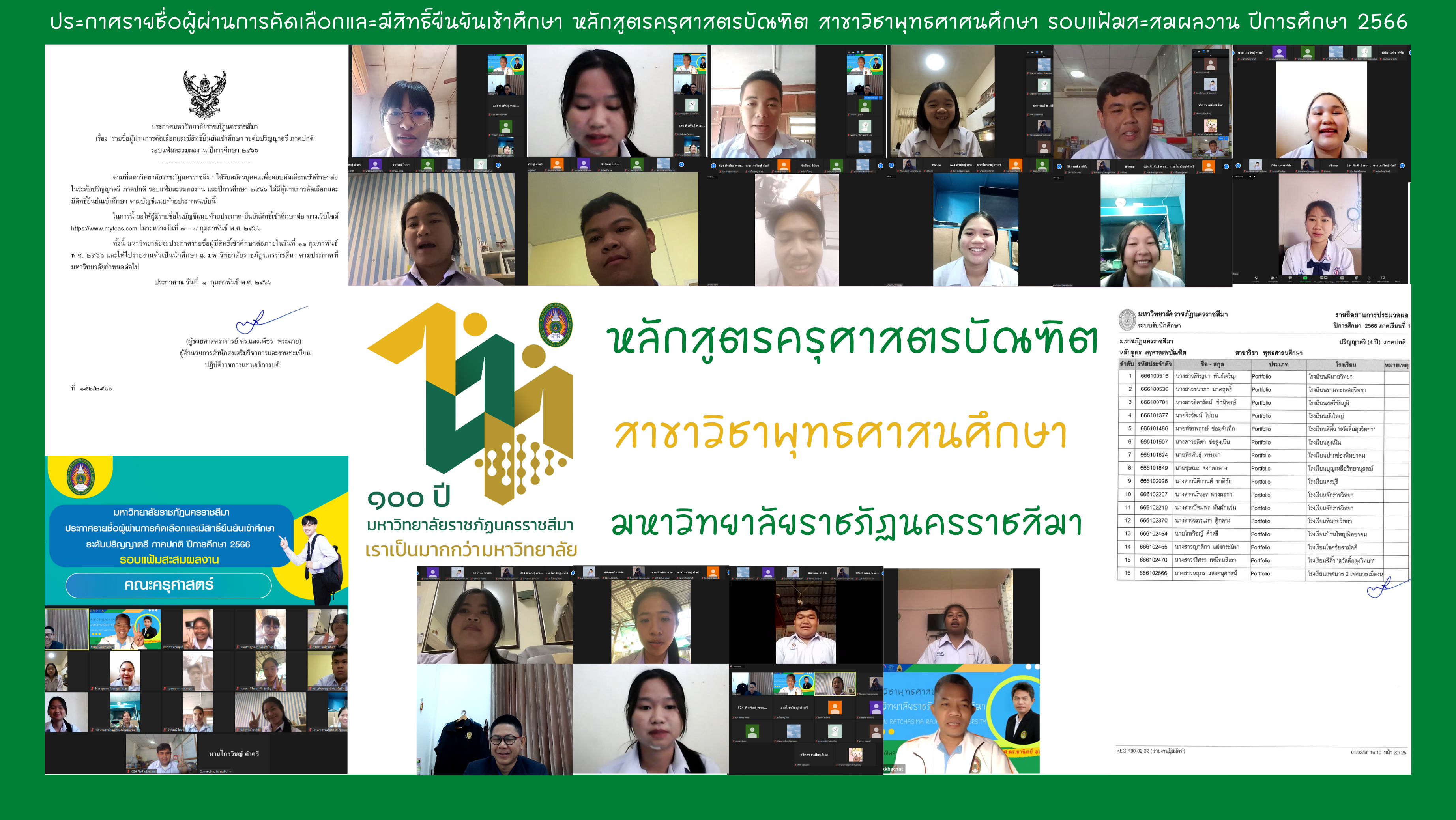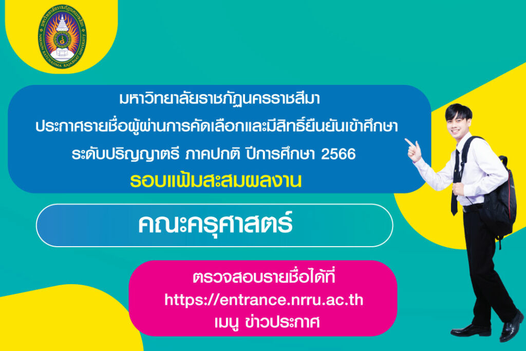 ประกาศรายชื่อผู้ผ่านการคัดเลือกและมีสิทธิ์ยืนยันเข้าศึกษา หลักสูตรครุศาสตรบัณฑิต สาขาวิชาพุทธศาศนศึกษา ระดับปริญญาตรี ภาคปกติ รอบแฟ้มสะสมผลงาน ปีการศึกษา 2566 มีรายชื่อผู้ผ่านการคัดเลือกและมีสิทธิ์ยืนยันเข้าศึกษาต่อทั้งหมด 16 คน ดังต่อไปนี้